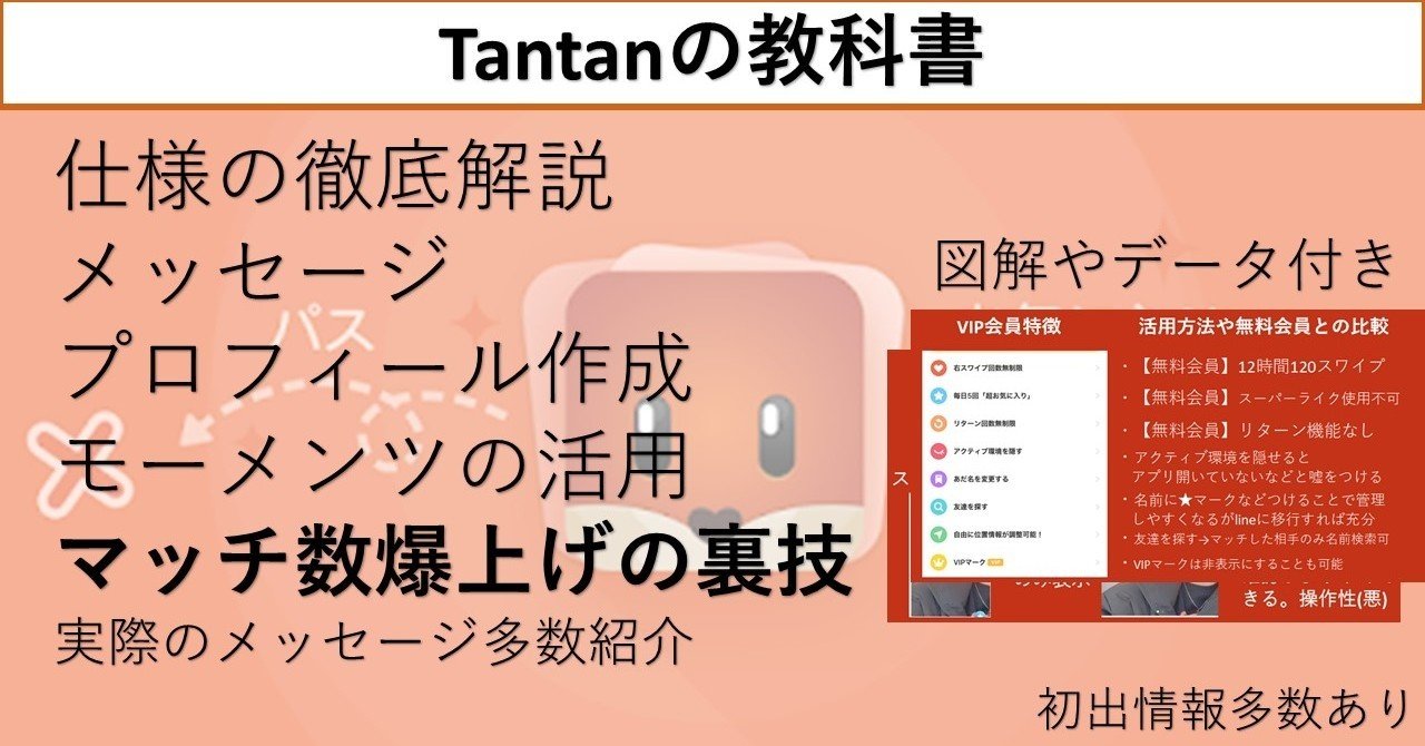 Tantan攻略の教科書 仕様を利用したマッチ率爆上げ方法とは 初出情報 メッセージ プロフィール徹底攻略 めぐみ ネトナンテク恋愛工学 Note