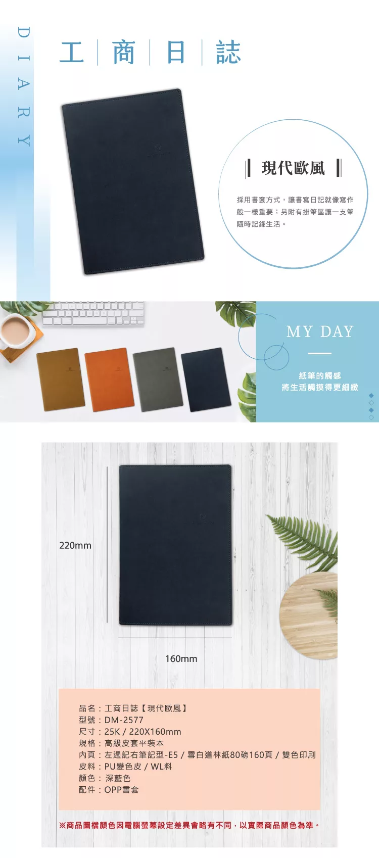 博客來 Data Mate 21日誌 Dm 2577 現代歐風25k 高級皮套平裝本 深藍色