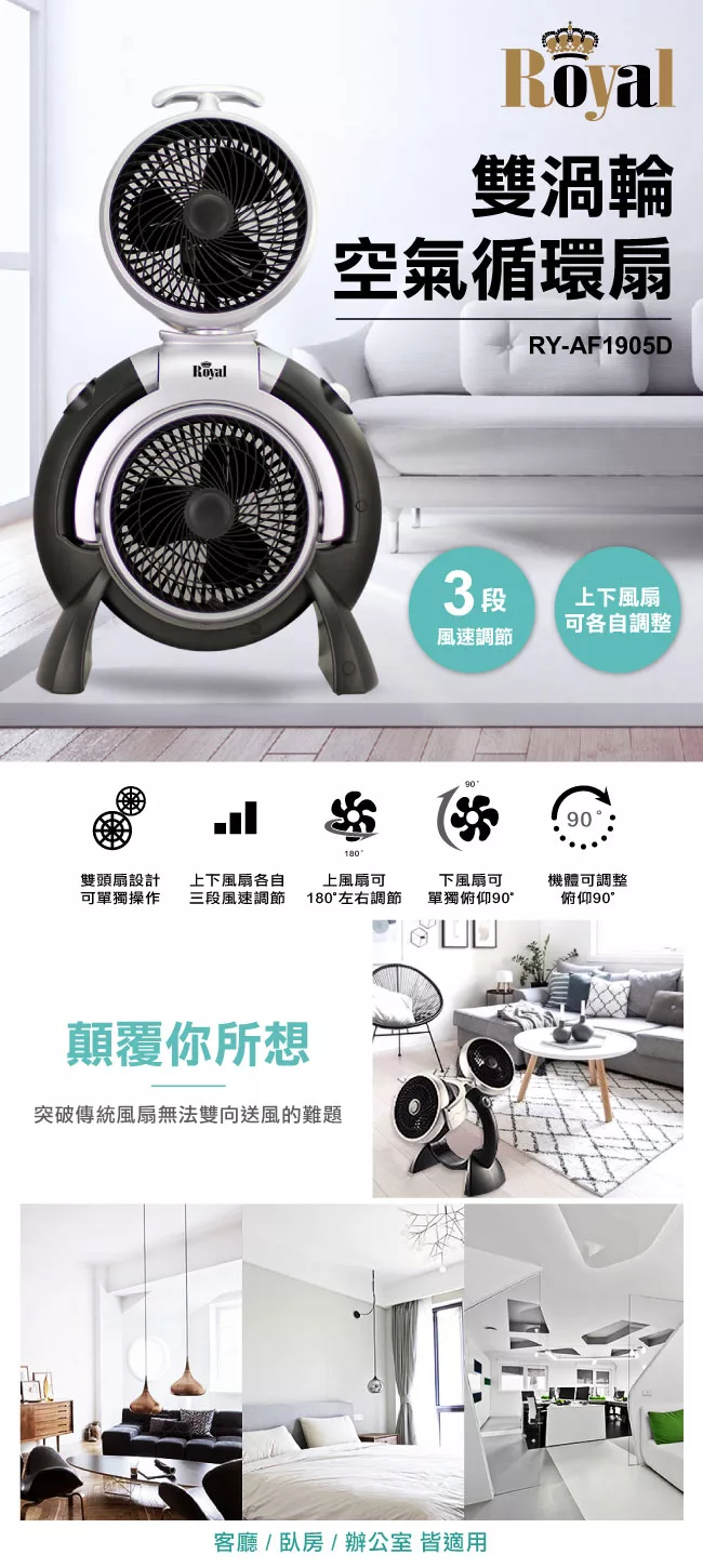 博客來 Royal 雙渦輪空氣循環扇ry Af1905d