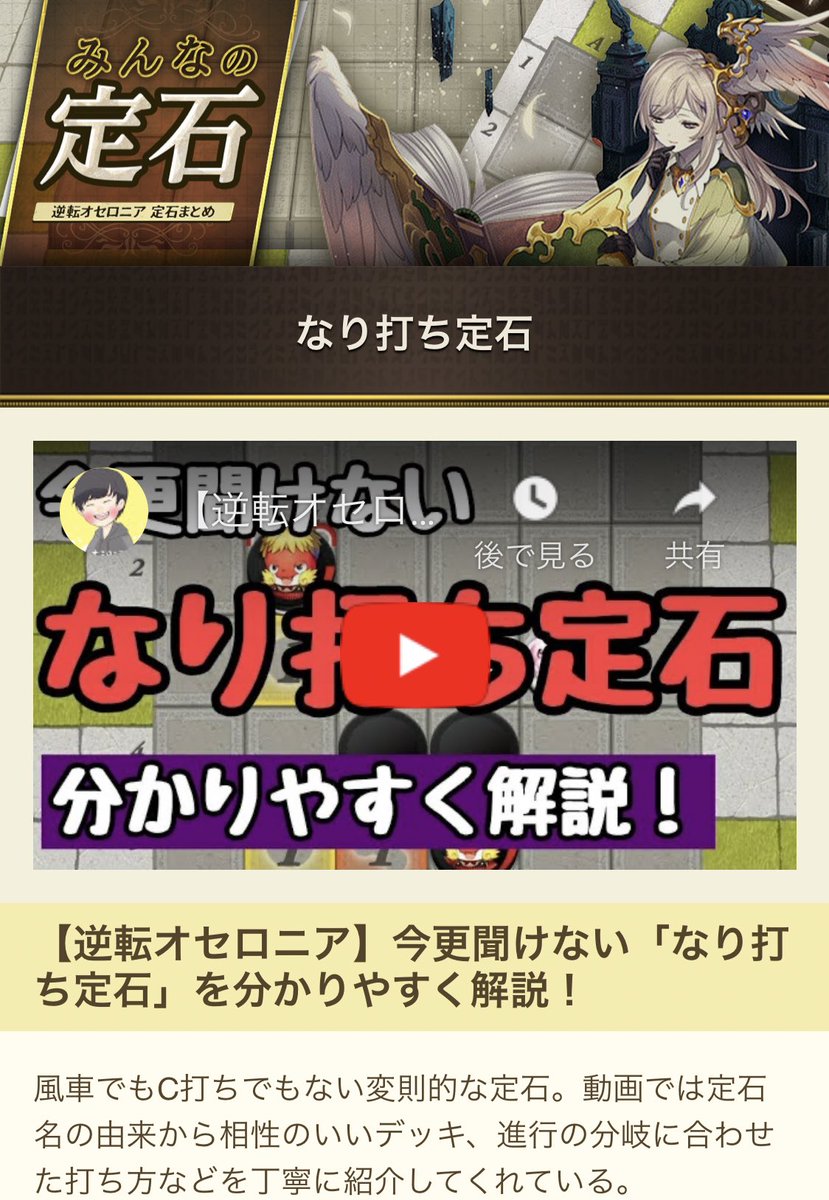 あっちゃん No Twitter なんか新しい定石覚えたいなー あれれ こんなところに有用な定石まとめサイトがあるぞー オセロ修行場のリンクに 動画も完備だって よーし 今日はなり打ち練習するぞー シュシュシュ T Co Cj03zsvbvi 逆転の書