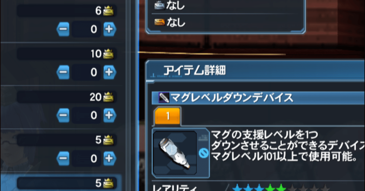 デバイス等解説 † マグレベルダウンデバイス:エクスキューブ50個と交換。支援レベルを1下げる。 コストがデカすぎる。育成に失敗するとほぼ修正不可能って言うのはそういう理由だったのか 12/18からは5個で交換できるようになる。. (C)SEGA『PHANTASY STAR ONLINE 2』公式サイトhttp//pso2jp/. 今回は「 マグの育て方 」ということで、 マグの育成方法について解説していきます。 《マグとは?》 マグというのは プレイヤーを支援 するペットのようなもので、 キャラの頭上に浮いている機械生命体です。 クラスレベル3になると発生するコフィーのオーダー「マグライセンス授与申請.