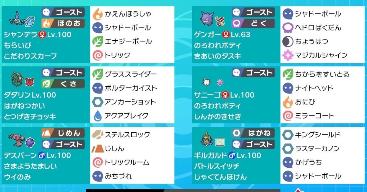 ポケモン剣盾 シリーズ6用のゴースト統一パ紹介 ついでにレンタルパ スロー Note