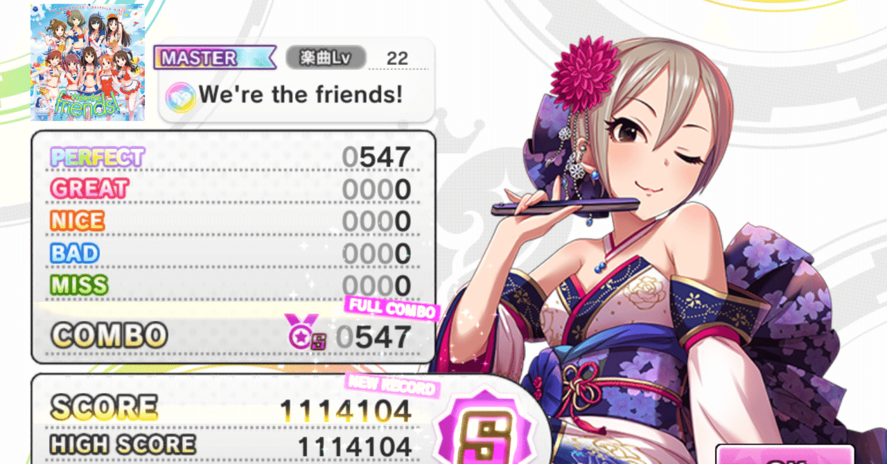 ゆでたまご 初見 デレステやるの久しぶりだから精度ガタガタやわ マスター は何か知らんがnice出るしマスプラはmiss多すぎだし叩きやすいけどトリル苦手な俺にはフルコンは無理ゲーな譜面だわ