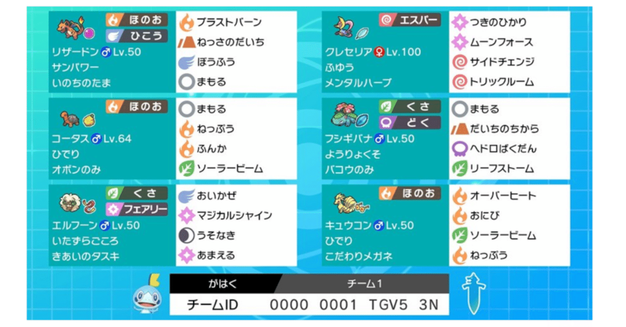 125 130 リーフストーム*1 150 ハードプラント:. ポケモントレーナー N 円 晴パーティ(夏:2・6・10月) キュウコン(いのちのたま) ひでり:. 対キュウコン 注意すべき点 特性ひでりで補強されるほのお技、ソーラービーム。わるだくみで更に高火力となる。 特殊耐久が高く、めいそうやマジカルフレイムでさらに強化を行ってくる。.